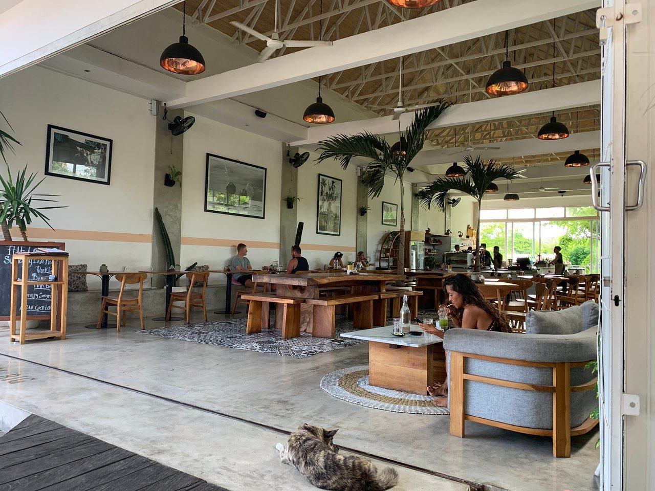 Surrounded by a beautiful tropical garden, visitors can enjoy fresh coffee, healthy meals, smoothies, and light brunch options. The laid-back atmosphere makes it a perfect place to relax after surfing or exploring nearby beaches.